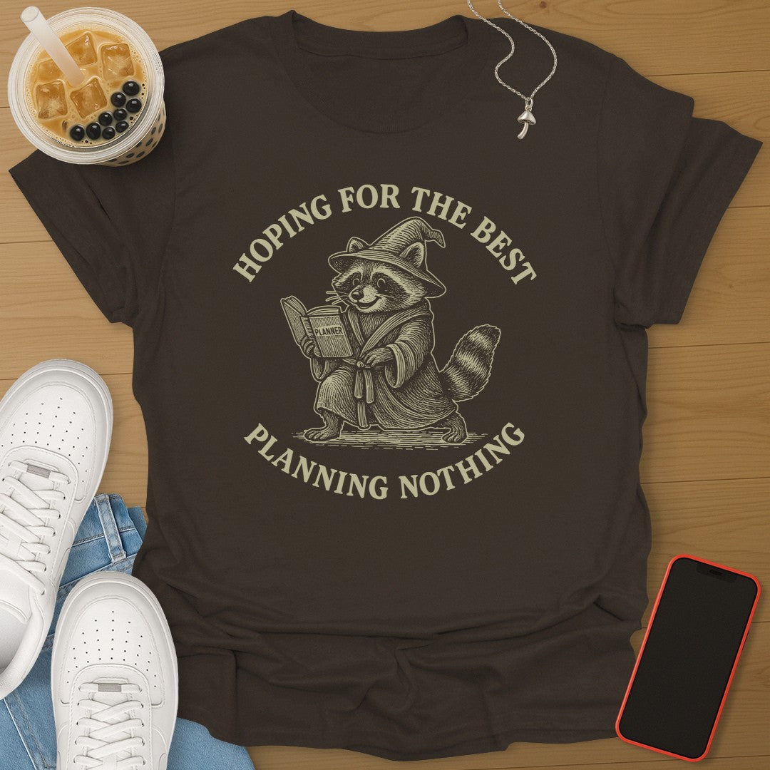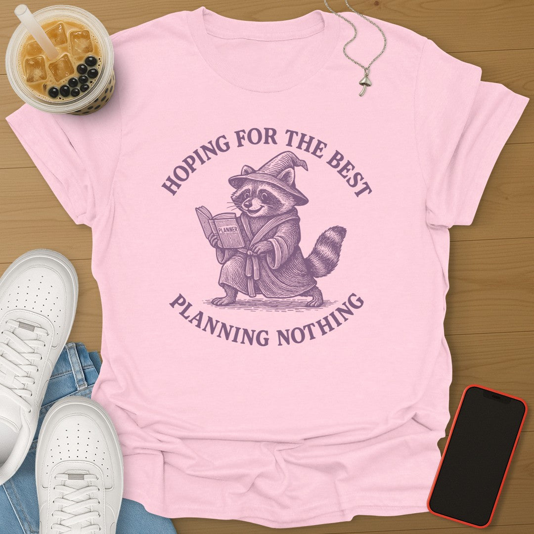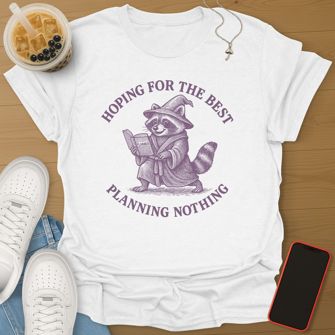 Manifesting greatness while putting in zero effort, this wizard raccoon lives by vibes alone. A perfect tee for dreamers, procrastinators and anyone who trusts the universe to handle the details ✨🦝.